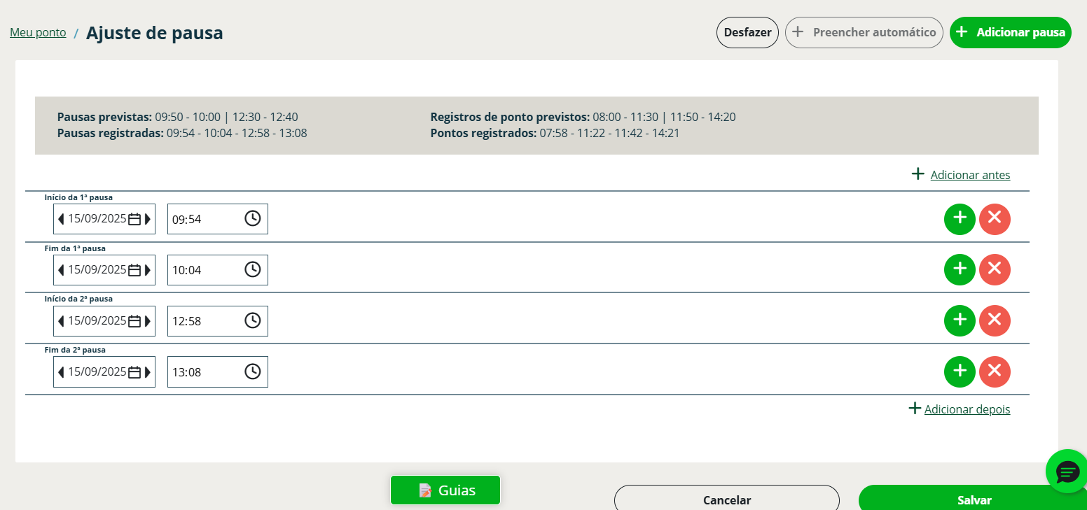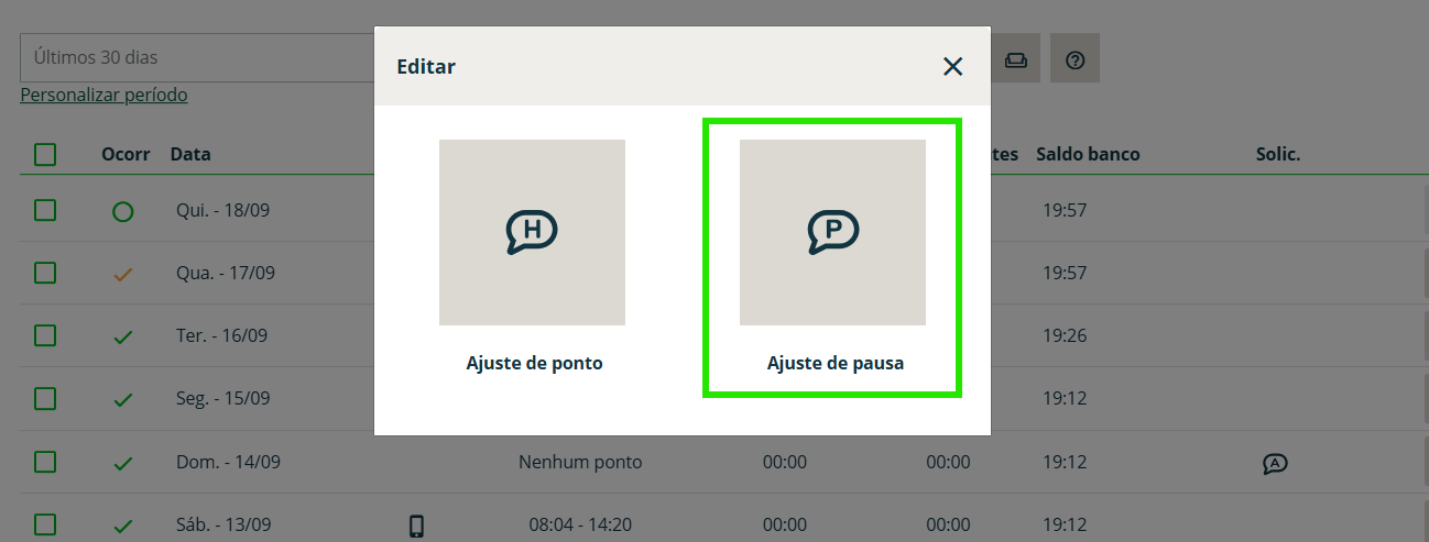 ImportanteA solicitação de ajuste de pausa fica disponível apenas na versão web do sistema.