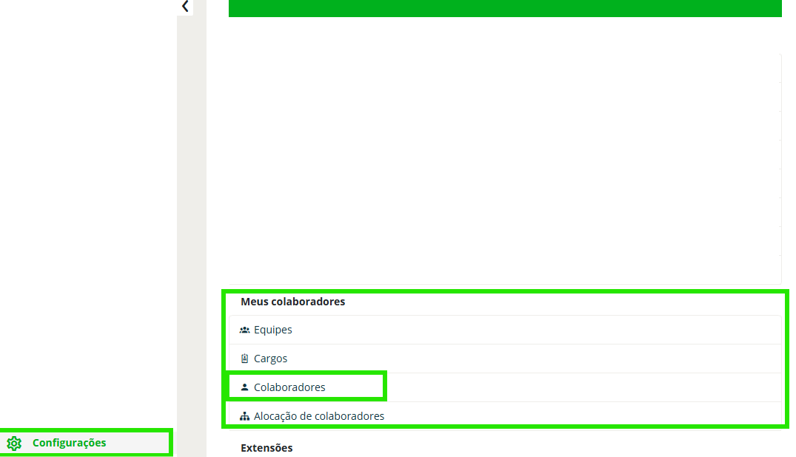 Passo 2: No quadro de Meus colaboradores, selecione o menu Colaboradores;