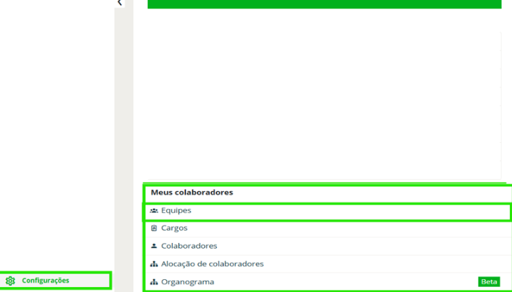 Passo 2: No quadro de Meus colaboradores, selecione o menu Equipes;