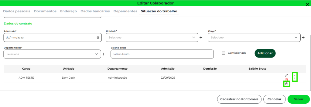 Todos os dados de cadastro estiverem corretos, mas algum dado de contrato estiver inconsistente (da aba “Situação de trabalho”).