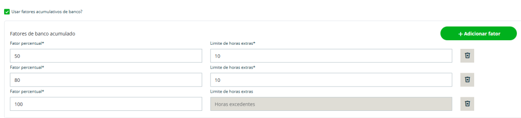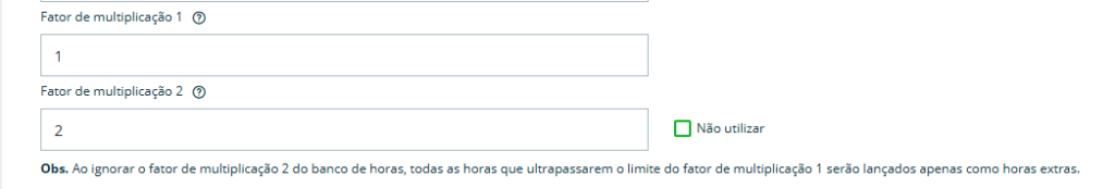 O campo de fator de multiplicação é um parâmetro utilizado para informar ao sistema como as horas devem ser convertidas no banco de horas.