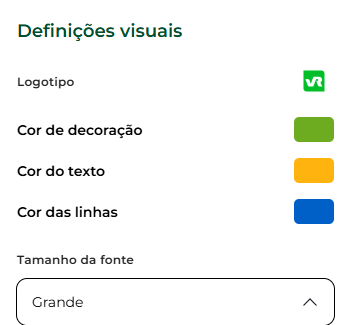 Passo 5: à direita do sistema o sistema exibe a seção “Definições visuais”. Na seção abaixo você confere cada uma das opções de personalização e como elas refletem no seu holerite.