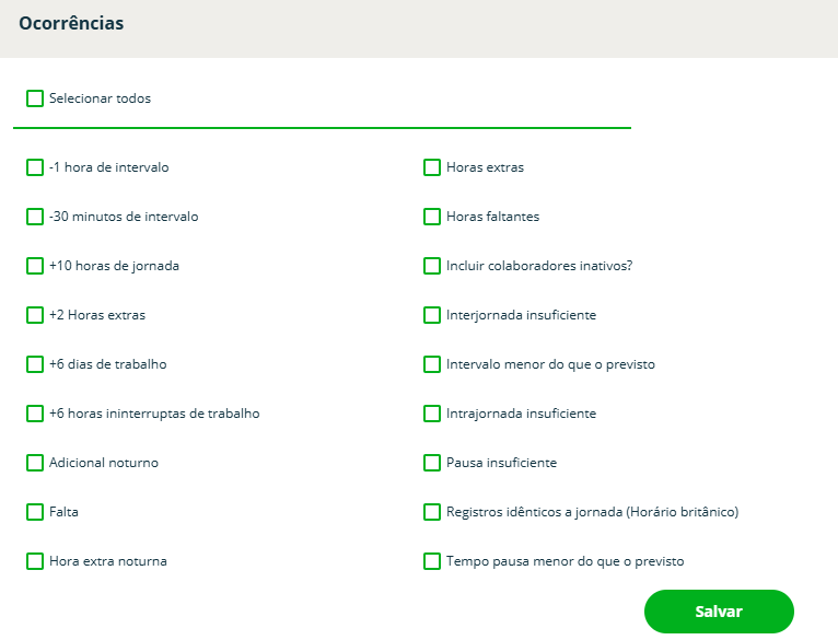 Será demonstrada para todos os dias que o colaborador teve um tempo de interjornada (intervalo entre jornadas) menor que o configurado nas notificações das configurações de controle de ponto.
