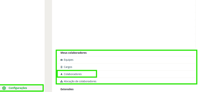 Passo 2: No quadro de Meus colaboradores, selecione Colaboradores;